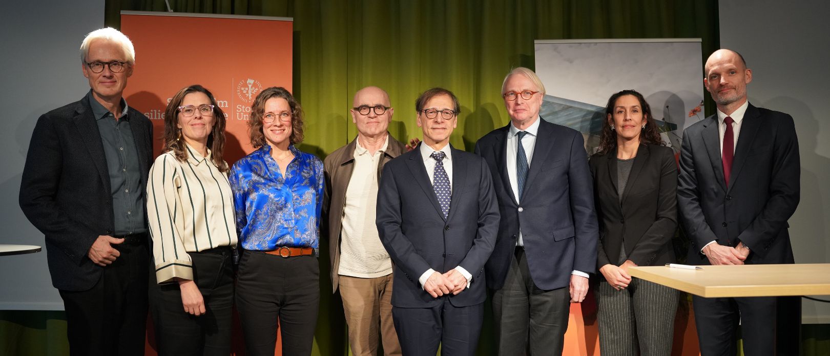 Speakers and panelists of the report launch event. From left to right: Måns Nilsson, Åsa Persson, Lisen Schultz, John Hassler, Richard Damania, Carl Folke, Beatrice Crona, Tobias Axerup. Photo: Vaida Ražaitytė/SRC.