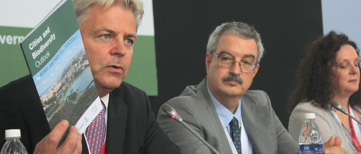 An example of centre policy impact: In 2012, centre researcher Thomas Elmqvist (left) presented the world's first assessment of urban biodiversity Read more about it here. Photo: UN CBD COP11